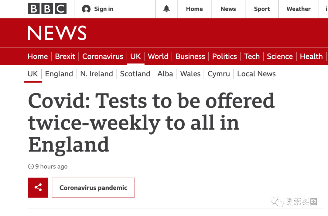 在英国政府的检测计划的实施下,从周五开始,英格兰的每个人都将获得每周两次快速冠状病毒检测的机会。